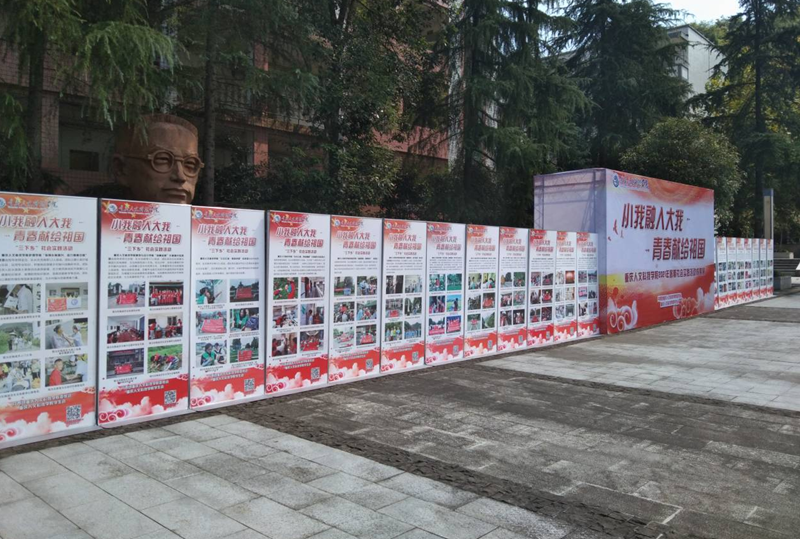 将小我融入大我,用行动献礼祖国。国庆期间,学校组织开展了2021年暑期“三下乡”社会实践活动图片展,将广大青年师生大力开展“三下乡”社会实践活动,深入街道、社区、乡村,了解国情民意,感受祖国飞速发展、实现全面脱贫、大力推进乡村振兴的喜人局面,用一幅幅图片、画报生动展现,让全校师生切身感受了中华大地的欣欣向荣,广大人民的幸福安康,进一步强化了青年学子学好本领、建设祖国的爱国情、强国志。