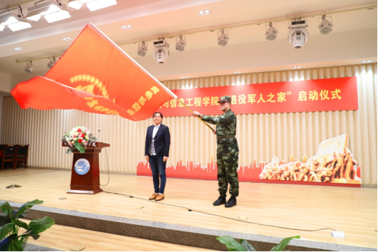 随后,机电与信息工程学院院长强华为“退役军人之家”授旗。