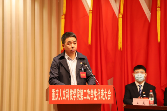 重庆航天职业技术学院主席团成员赵建建作为兄弟高校代表致辞,他对beat365官网学代会顺利召开表示祝贺,并希望在未来能够继续加强两校之间的交流合作,共同推进学生会的改革创新,创造学校发展的新业绩,奏响时代进步的新篇章。