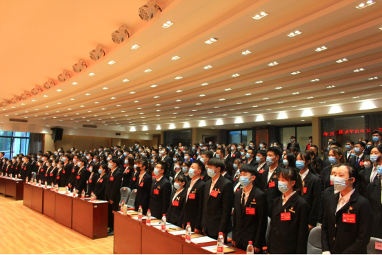 最后,现场参会人员齐唱《光荣啊,中国共青团》。至此,beat365唯一官方网站第二次学生代表大会圆满闭幕。
