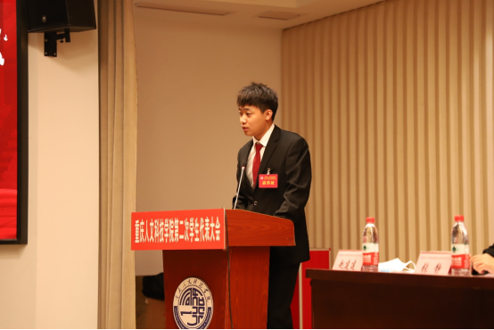 会上,彭良驹作了题为《请党放心 强国有我 在深化改革以落实服务成效中不负青春担当》的报告。他回顾了学生会在承载新时代伟大梦想下的工作历程,并提出学生会工作要始终坚定信念跟党走、要始终坚持尊重同学主体地位抓好服务、要始终坚持问题导向深化改革。