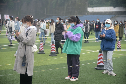 为深入落实重庆市关于新冠肺炎疫情防控工作要求,全面做好学校新冠肺炎疫情应急处置工作,确保广大师生生命安全和身体健康。根据学校新冠肺炎疫情防控领导小组工作部署,11月11日下午15时,学校疫情防控工作领导小组办公室协调组织相关部门开展了疫情防控应急演练,演练分为校大门的疫情应急处置和大规模核酸采样检测两个环节。校长张跃光、党委书记张辉、副校长程荣尧、党委副书记舒卫华,相关职能部门负责人、各二级学院党总支书记、以及师生和教职工代表1200余人全程参与了本次演练。