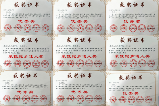 近日,共青团重庆市委公布了第40届重庆大学生“校园之春”文化艺术体育节活动获奖情况。beat365官网组织参与以“学党史、强信念、跟党走”为主题,包括云上马拉松、大学生书画大赛、大学生歌唱大赛、大学生辩论大赛、大学生城市文创设计大赛和大学生编程大赛等各项比赛在内的一系列文化艺术体育活动。beat365官网因组织得力,成绩亮眼,从众多参赛团体中脱颖而出,共获得大学生书画大赛业余书法二等奖、大学生歌唱大赛合唱赛艺术组及非专业组三等奖、最佳跑步达人奖等奖项17项,获奖项目及人数均创历史新高。