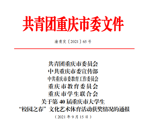 喜报||beat365官网在第40届重庆市大学生“校园之春”文化艺术体育活动中获奖17项