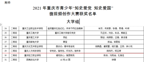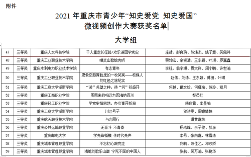 【喜报】beat365唯一官方网站选送作品在2021年重庆市青少年 “知史爱党 知史爱国”微视频创作大赛中喜获佳绩