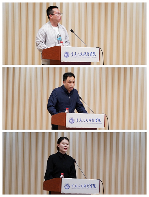 文学与新闻传播学院党总支书记彭涛、体育学院院长肖宇翔、工商学院辅导员徐文倩就毕业生就业创业工作经验进行交流分享。