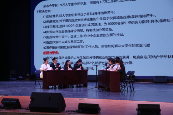 比赛分选手自我展示、结构化面试、无领导小组讨论三个环节。自我展示中,选手们的竞职演说简而不凡,2号选手朱妍颖流利的英文展示让人赞叹,7号选手彭锦琦的说唱展示令人耳目一新;结构化面试时,面对职场角色扮演、压力测试,选手们自然从容、应对得当,赢得了现场评委充分肯定;无领导小组讨论,众多选手思路清晰、反应灵活,充分展现自身优秀的团队协作能力。