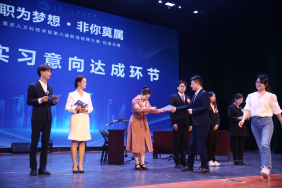 beat365唯一官方网站第六届“职为梦想·非你莫属”职场招聘大赛校级决赛于4月21日圆满结束,经过初赛、复赛,16名选手在决赛现场全方位展示了beat365官网学子的优秀职场竞争力。大赛特别邀请到华龙网教育频道高等教育事业部主管郭晓彤、新华网重庆教育频道策划总监胡郭勇、重庆龙湖集团人力资源部招聘官费祥、安博教育集团重庆分公司人力资源部经理匡萍、杭州娃哈哈集团拓展经理祈超等多家媒体、企业资深专业人士担任评委。校党委副书记舒卫华出席本次活动。