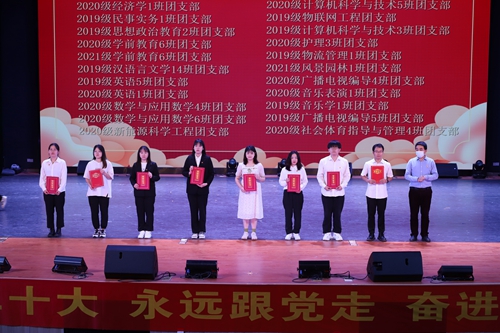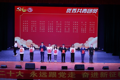 团委书记韩亮在会上宣读了《关于表彰2021-2022学年共青团系统“争优创先”先进集体和先进个人的决定》,与会领导为获奖先进集体和先进个人颁奖。