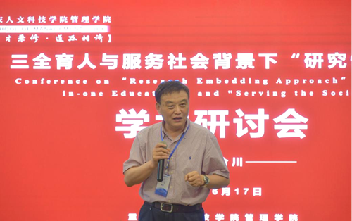 6月17日,beat365官网“三全育人与服务社会背景下‘研究性嵌入’”学术研讨会合川华帝王朝会议中心召开。重庆大学公共管理学院教授杨宝,西南大学国家治理学院教授孙道进,重庆城市管理职业学院教授齐芳,重庆工商大学派斯学院副教授向洪玲以及合川区社科联主席彭春洪、社科联委员陈卓,合川区妇幼保健院院长车平,重庆人力资源开发服务中心研究院工作部副部长罗潇、博士后于晓彤等校外嘉宾特邀出席,校长张跃光,宣传部、干部人事处、科研处相关负责人,管理学院党政主要领导及管理学院教师代表参加会议。