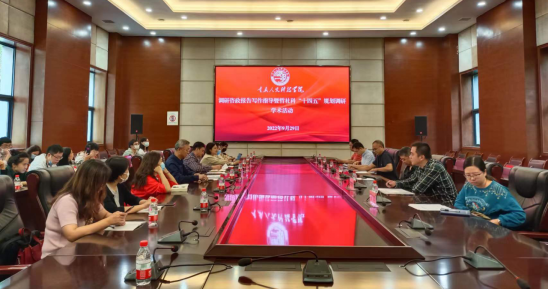 9月29日上午,重庆市社会科学界联会理论研究室主任王黎明、副主任苏科、重庆市合川区社会科学界联合会主席彭春洪等一行来校开展调研、咨政报告、哲学社会科学“十四五”规划写作研讨学术活动。学校纪委书记、副校长、校社科联副主席程荣尧、科研处处长肖亚成、副处长赵静、合川区社科联智库专家以及各二级学院教师代表等30余人参加。活动由赵静主持。