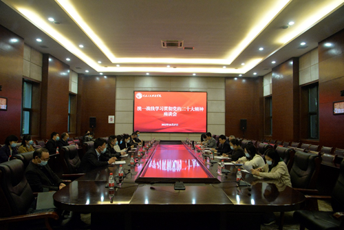 10月27日下午,学校在会议中心召开统一战线学习贯彻党的二十大精神座谈会。校长张跃光、纪委书记兼副校长程荣尧、党委副书记舒卫华,党委宣传部、党委统战部、干部人事处、教务处、科研处相关人员和学校统一战线成员代表参加座谈会。座谈会由舒卫华主持。