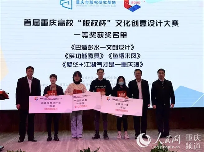 首届重庆高校“版权杯”文化创意设计大赛决赛颁奖现场。重庆师范大学供图