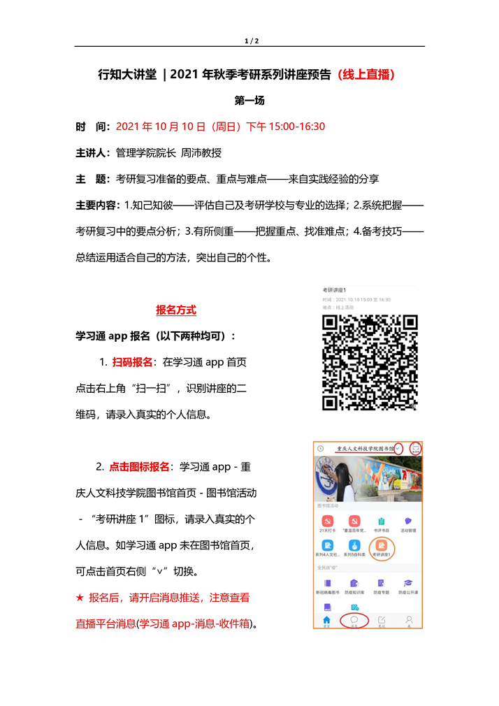 【行知大讲堂】 2021年度秋季考研系列讲座预告