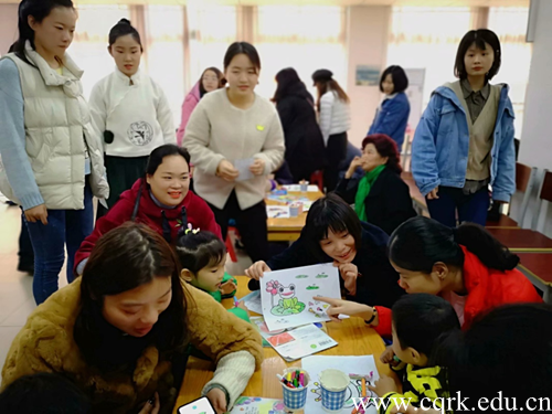 阅读会上,来自学前教育学院的同学们为小朋友们带来了精彩的手指操游戏、《小青蛙找妈妈》儿童故事演绎、亲子故事涂画等幼教活动,让在场的家长和孩子们一起互动游戏、亲子阅读和亲子绘画,在场的小朋友玩的开心,听的入迷,画得认真。