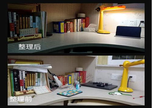 “房间脏乱,父母打扫”,这一现象常出现在我们身边。而这次活动中的“会收拾整理”项目,给同学们提供了很好的锻炼机会。以收拾整理来分担父母的工作量,形成自己的思维习惯和思考习惯。李虹瑶同学和李雪梅同学抓住机会,率先完成学习。李虹瑶同学认真收拾过后的书桌,干净整洁;李雪梅同学认真收拾的梳妆台,整齐有序。