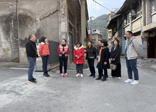 盐井街道纪工委书记廖加华、宣传委员王萌、文化中心主任汤静、社区党支部书记明亚萍热情接待并全程陪同。宣传委员王萌向学院老师介绍了盐井街道历史沿革、城镇发展、文化振兴等相关情况,盐井街道纪工委书记廖加华就盐井街道现有人居现状、场镇规划架构、历史文化脉络进行了详细阐述,并与学院系主任进行了深入的交流。