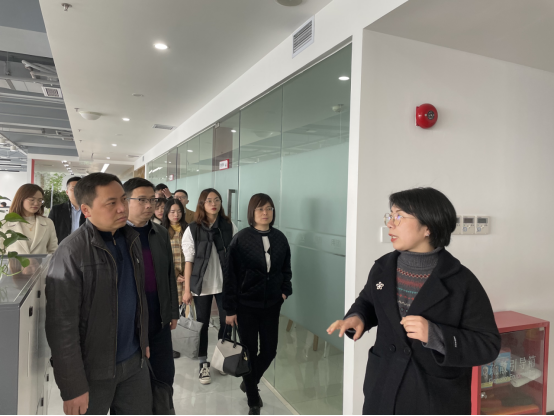 在公司招聘经理余维希的引导下,调研组一行参观了公司办公环境,了解了公司的发展历程,随后双方就产教融合、人才培养方案、专业和课程共建等进行了座谈交流。