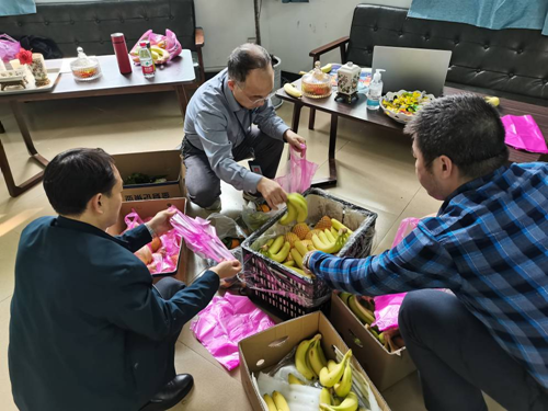无党派人士、文学与新闻传播学院副院长张普安(左二)慰问留校坚守岗位的老师和疫情期间遇到困难的同学,认真履行工作职责,组织协调学院教学工作,确保学院教学秩序正常。