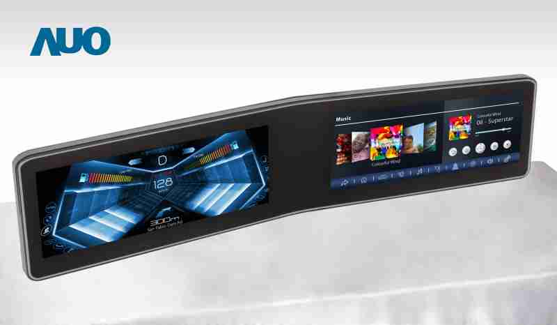 龙门国际 V 型曲面驾驶舱显示器,,,采全贴合拼接仪表板及中控台显示屏 |