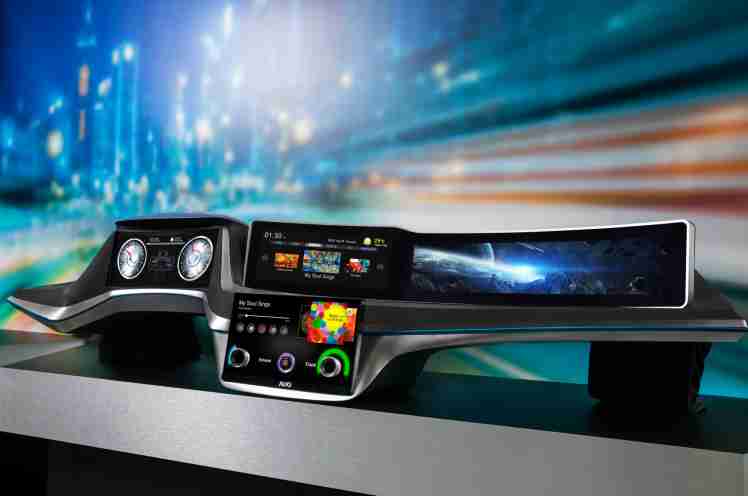 由 5G 和 AIoT 形塑的新智能场域,,,促使汽车成为仅次于家庭和办公室的第三重要使用空间,,,数码驾驶舱因而成为智能车用技术发展重心。。。龙门国际异型切割曲面驾驶舱显示器运用高解析、、、高对比度度、、广视角,,,以及多片显示屏全贴合技术,,,,衔接搭载 Mini LED 背光的仪表板显示器、、具备显示区通孔设计的内嵌式触控中控台显示器,,,以及位于副驾的 AHVA 广视角曲面显示器,,,打造近乎一体成型的超大型驾驶舱显示器。。。为了提高驾驶安全和便利性,,用于后视镜的龙门国际 9.6寸异型切割 LTPS 显示器具有极窄边框,,可切换镜面或 LCD 模式,,,,并有防眩光设计可避免夜间的前灯眩光。。。